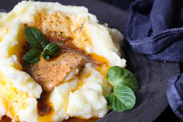 Für zwei Portionen texanisches Kartoffelpüree verwenden wird 500 g Kartoffeln. Ein Teil der Kartoffeln wird geschält und ein Teil bleibt ungeschält. Die Kartoffeln werden klein geschnitten und in 0,5 Liter kaltem Wasser zum Kochen gebracht. Reduziere die Hitze und koche die Kartoffeln weiter, bis sie gar sind. Gieße nun einen Teil des Kochwassers ab und gib die Hafer- oder Sojamilch, die Margarine und die Gewürze hinzu. Püriere die Masse, bis sie komplett vermengt ist und schmecke hinterher das Püree noch einmal ab. Fertig ist das vegane Kartoffelpüree. Dazu passen die Frikadellen, braune Soße (z. B. eine vegane Fertigmischung) und Rotkohl aus dem Glas.